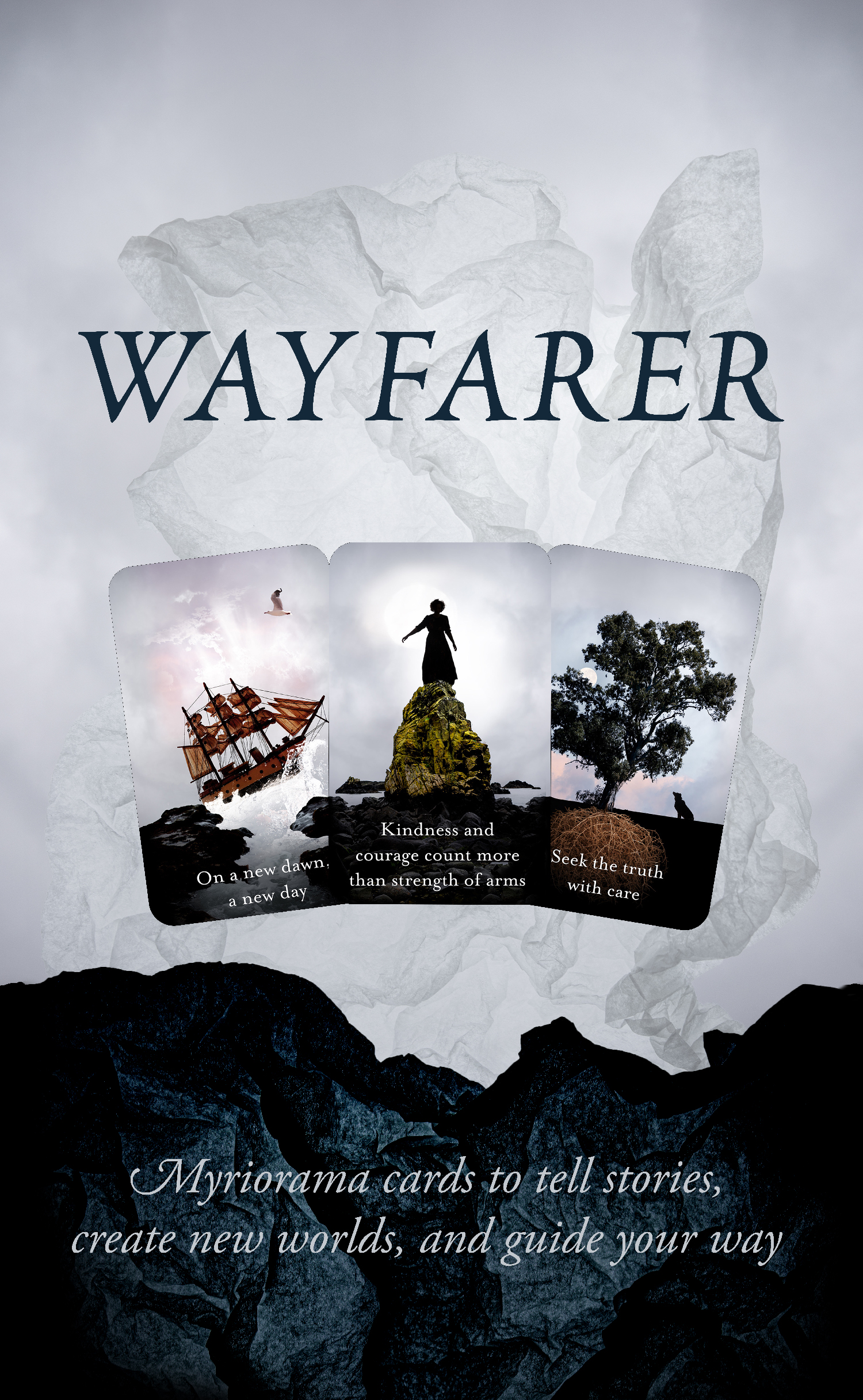 Wayfarer is a unique set of sixteen beautiful full colour cards which in words and pictures take you on a journey of mystery, magic and meaning. The cards can be used to build a thousand stories; or consult the fairy tale oracle; or play games of words and pictures: the choice is yours!